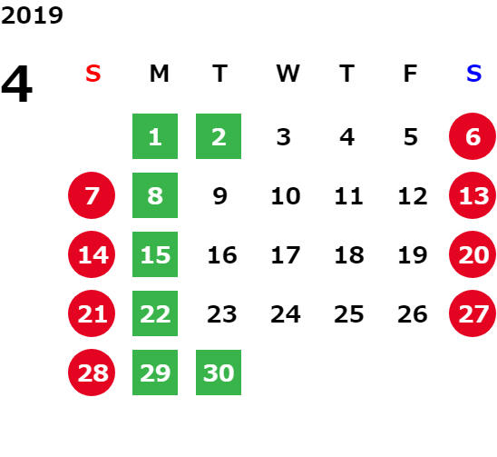 毎週月曜日及び、 毎月第一・第三火曜日は定休日