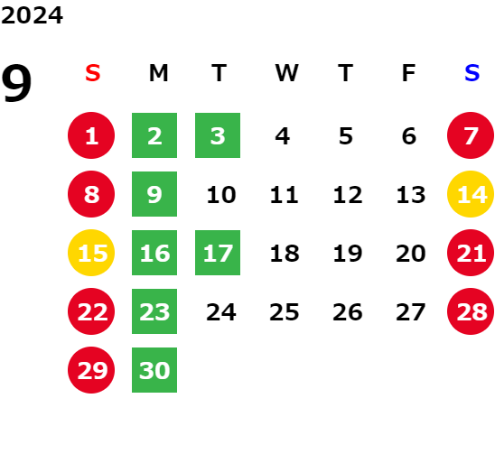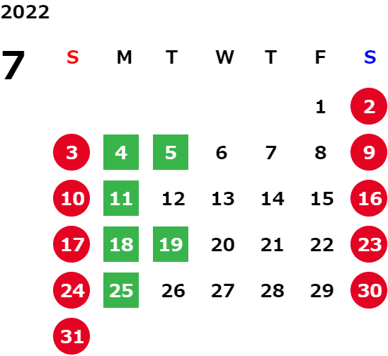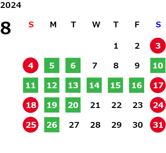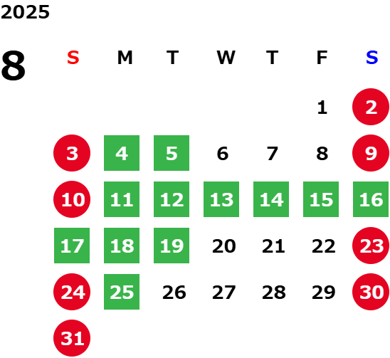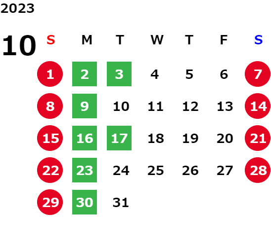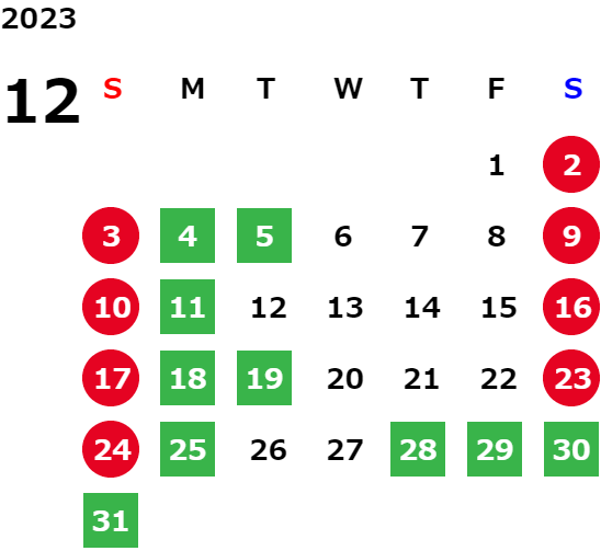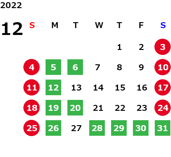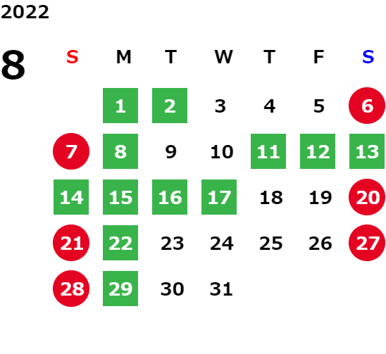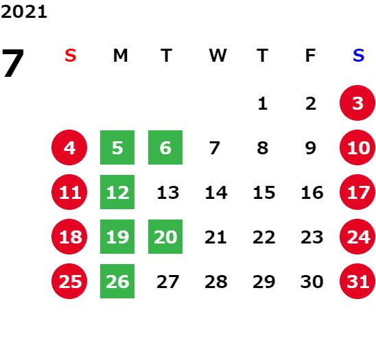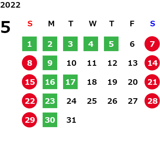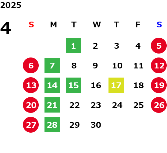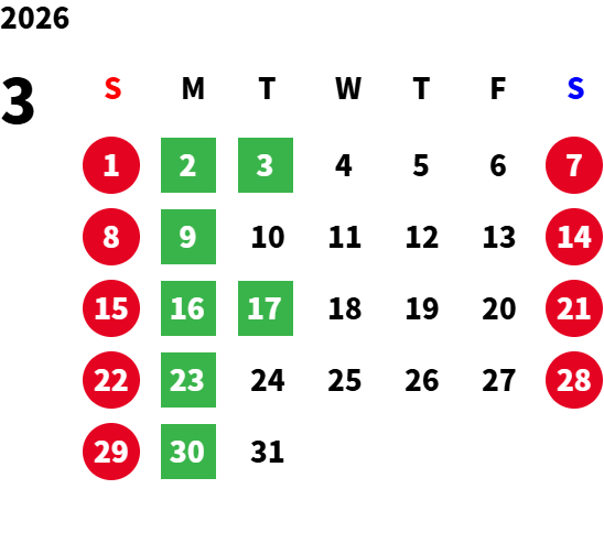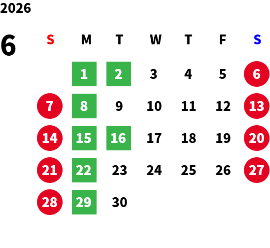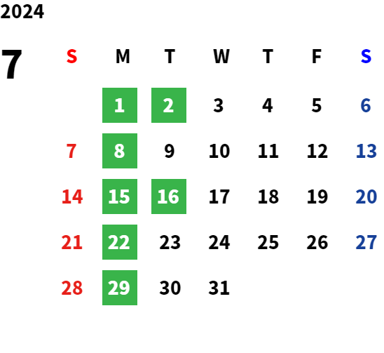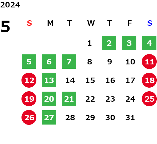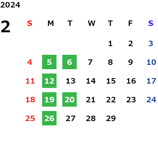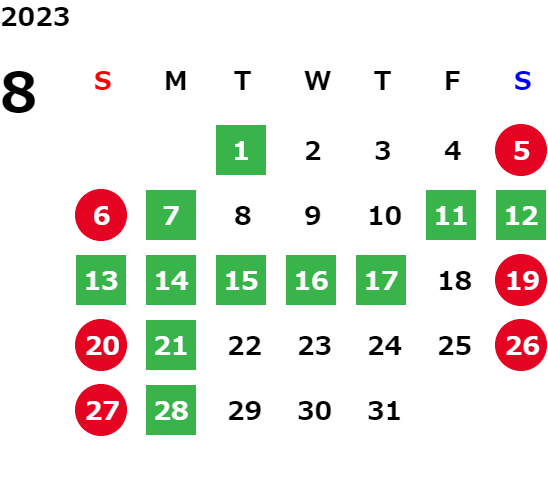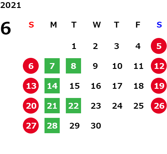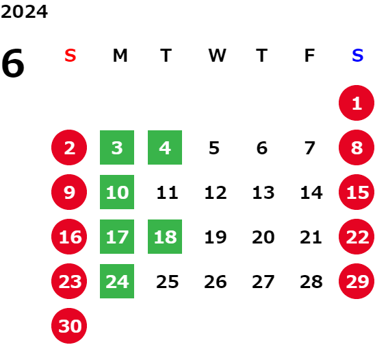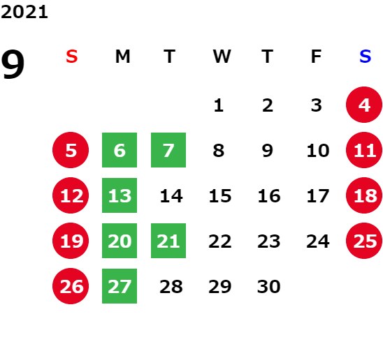 毎週月曜日及び、 毎月第一・第三火曜日は定休日