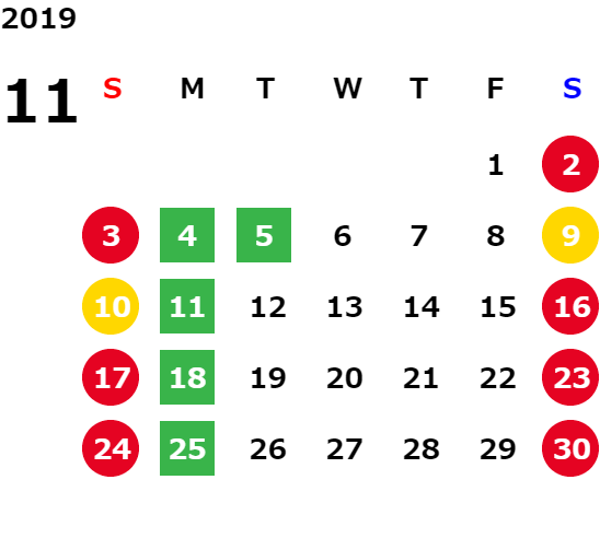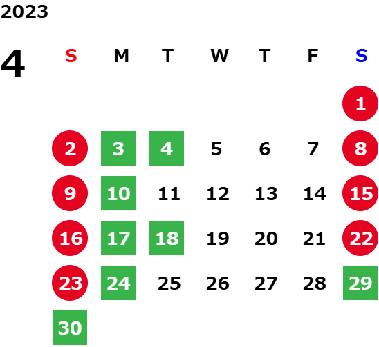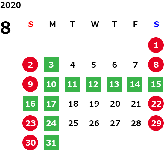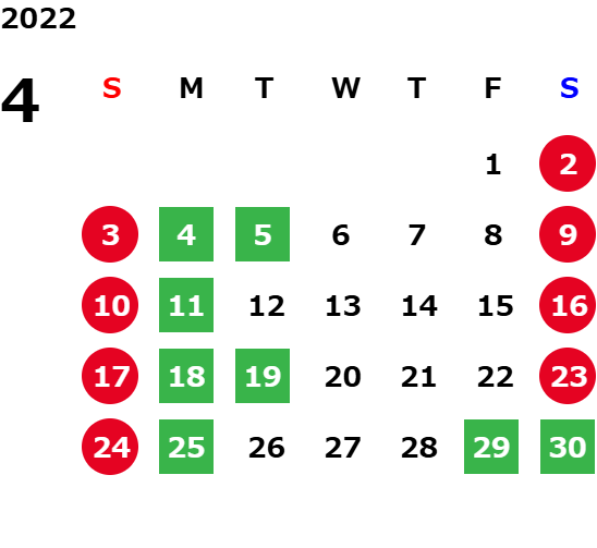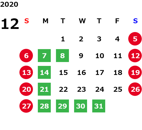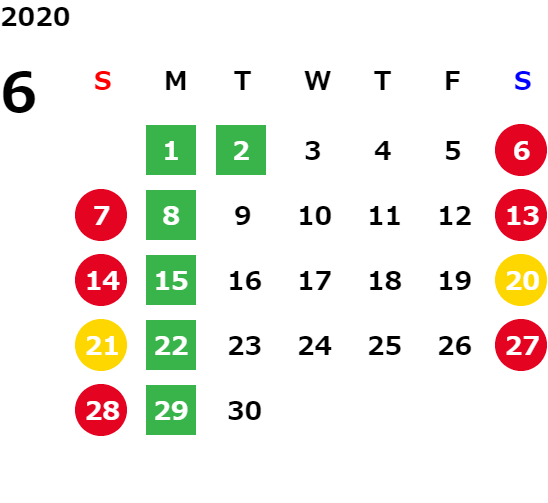 営業日カレンダー